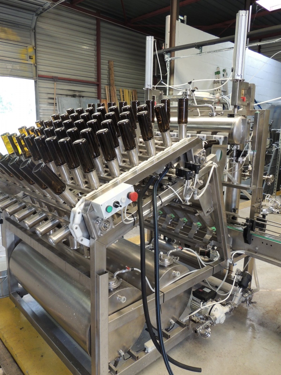 - hladina nápoje v láhvi může být uživatelsky nastavena, díky konstrukci plnící trysky je zaručeno, že dojde vždy k naplnění všech láhví do stejné hladiny (+-3mm běžné pro isobarické plnění) na lince je možné plnit sycený a nesycený nápoj (pivo) přímo z tanku