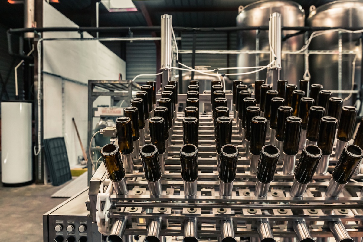 - před plněním nápoje jsou láhve vystříknuty vodou a sanitačním roztokem. Objem zásobníku sanitačního roztoku je 200l