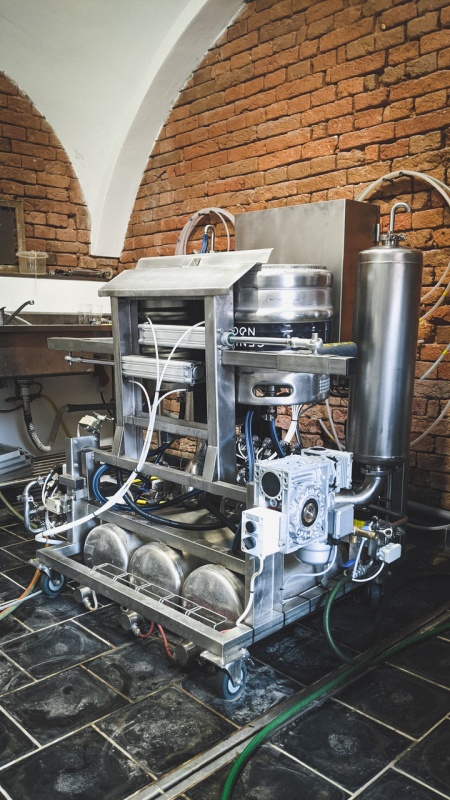 - Následuje dvojitý výplach KEGu horkou vodou, tato voda se nerecykluje