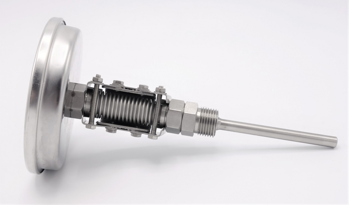 - Teploměr je vyroben z nerezové ocel 1.4301 (AISI 304), opatřen hermetickým těsněním, které zabraňuje průniku vlhkosti do pouzdra teploměru.