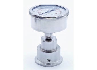 Tlakoměr, číselník 63 mm (zadní připojení), s oddělovací membránou-CLAMP DIN 32676, límeček 50.5 mm