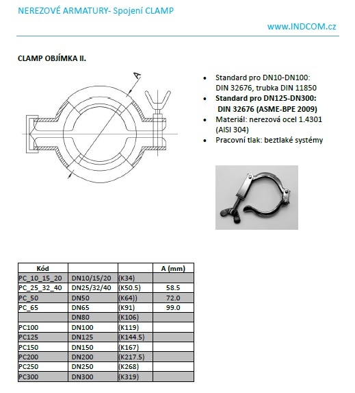 - Standard: DIN 32676 ASME - pro CLAMP límeček 217.5 mm (K217.5)