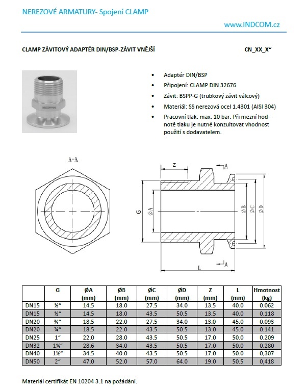 - Materiál: nerezová ocel 1.4301 (AISI 304)
