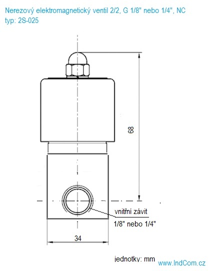 Elektromagnetický ventil, typ: 2/2, bez napětí uzavřený (NC), přímo řízený, připojení G 1/4"