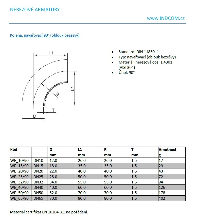 • Materiál: nerezová ocel 1.4301 (AISI 304)
