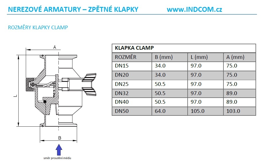 Nerezová zpětná klapka, clamp typ C-C