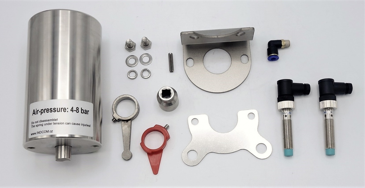 Pro ovládání pneumatického pohonu je třeba pohon doplnit pilotním (elektromagnetickým) ventilem pro ovládáním přívodu tlakového vzduchu. Dále je možní klapku doplnit indukčními snímači pro signalizaci skutečné polohy klapky (otevřeno/uzavřeno). Tato konfigurace Vám umožní ovládat klapku přes řídící systém se zpětnou vazbou v jaké poloze se klapka nachází.