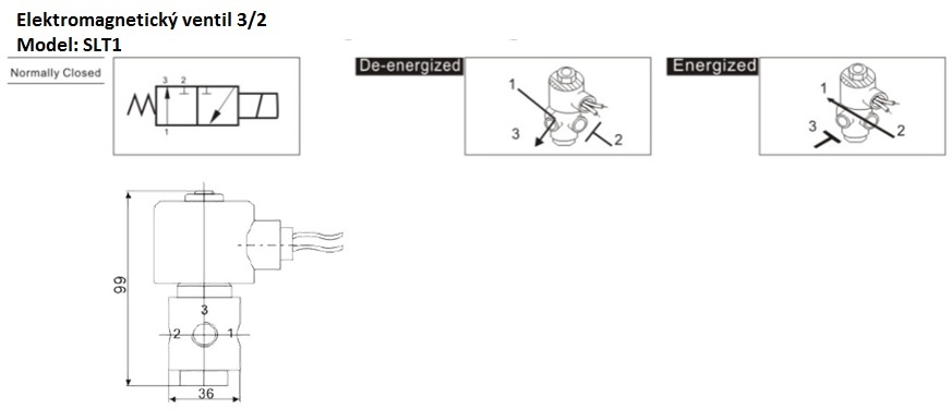 | Typ | 3/2 bez napětí uzavřený (NC) |