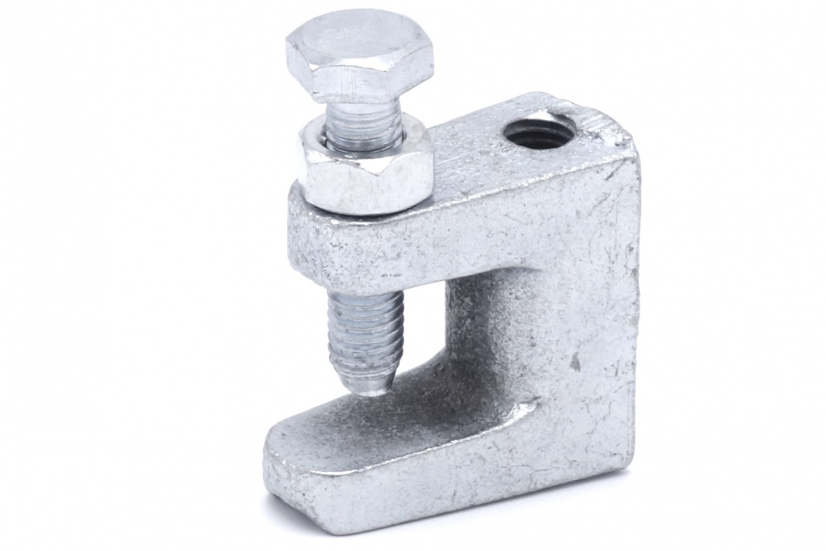 Nosníková svorka, pozinkovaná. Příchytky na nosníky pro upevnění závitových tyčí. Šroub je ve špičce upraven tak, že není možné vysmeknutí svorky z profilu.