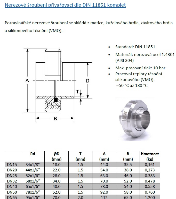 Převlečná matice dle DIN 11851