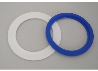 Materiál těsnění: 1 x silikon-transparentní, 1x PTFE-barva bílá (max. pracovní tlak těsnění: 8 bar, teplota –10 °C až 100 °C)