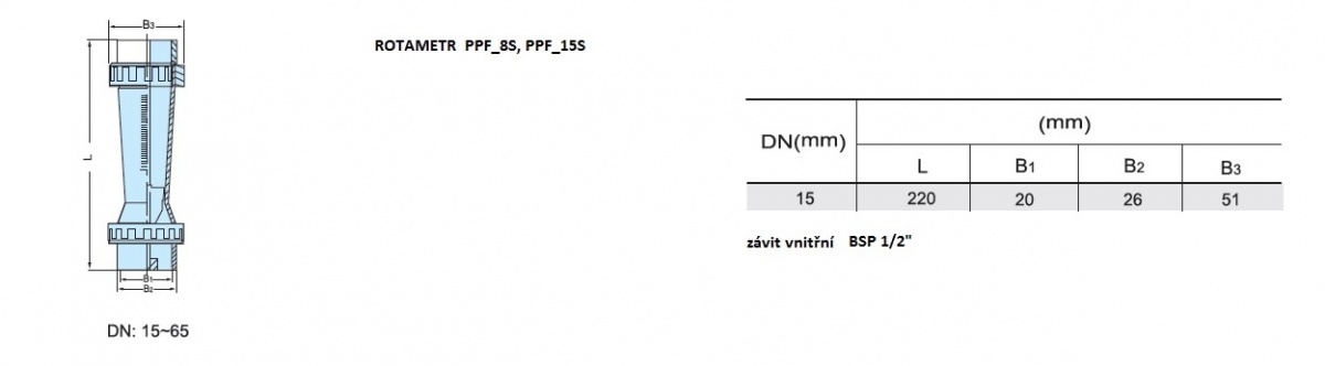 Plováčkový průtokoměr /rotametr/ plastový-spoj závit vnitřní BSP