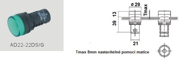 - montážní průměr kontrolky: 22 mm