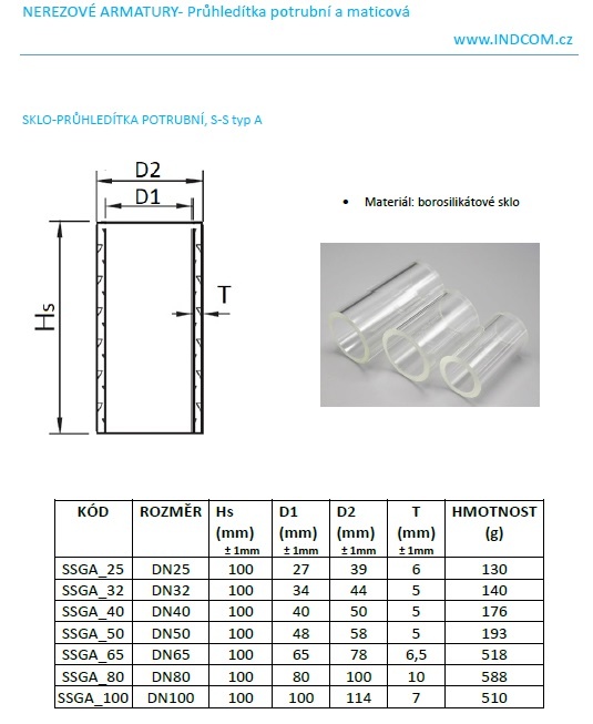 Náhradní borosilikátové sklo pro průhledítko potrubní DN100.