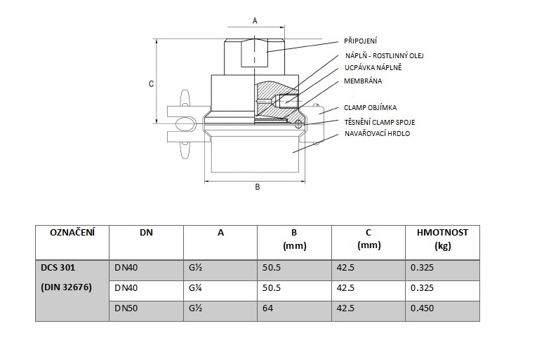Materiál těla CLAMP oddělovačeAISI 304 (1.4301)