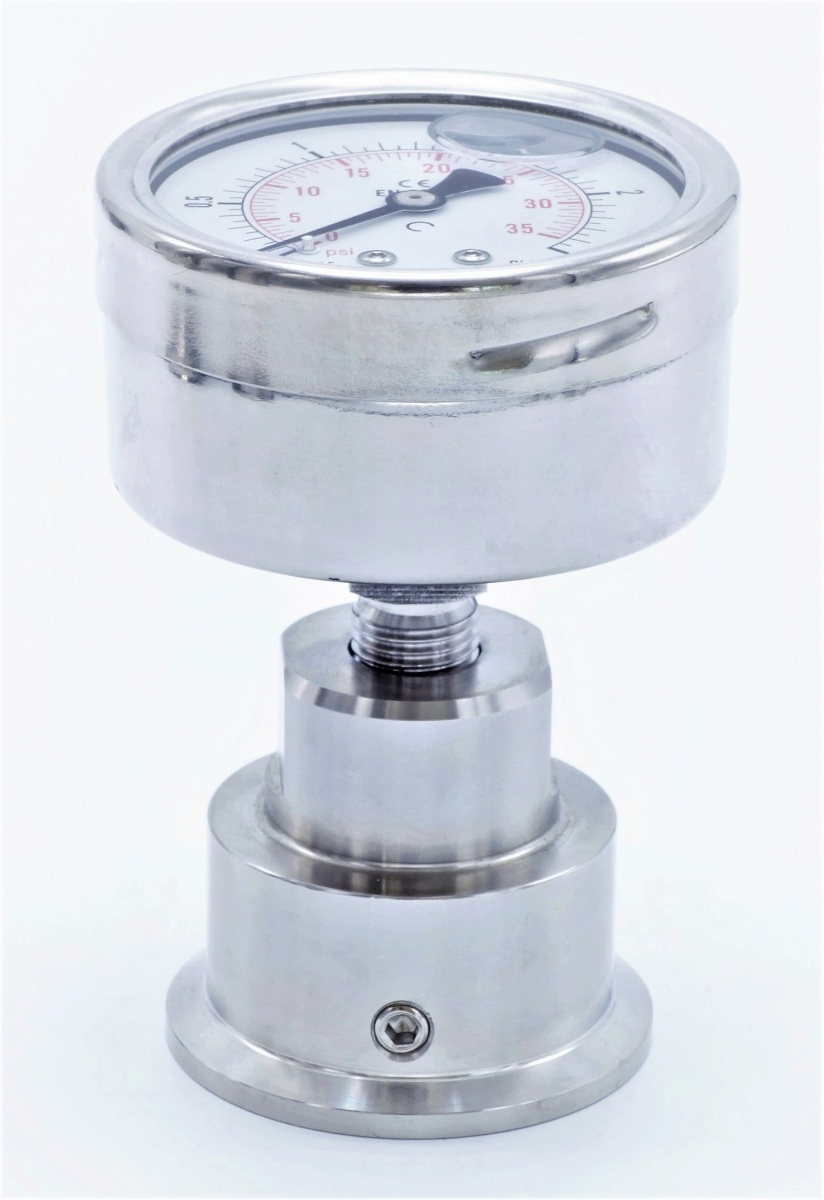 Tlakoměr, číselník 63 mm (zadní připojení), s oddělovací membránou-CLAMP DIN 32676, límeček 50.5 mm