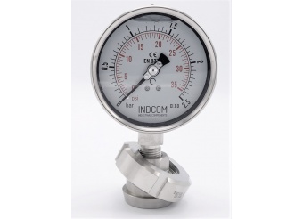 • Tlakoměr je vyroben z nerezové oceli materiál pouzdra AISI 304, materiál závitu AISI 316. Snímacím zařízení je Bourdonova nerezová pružina.